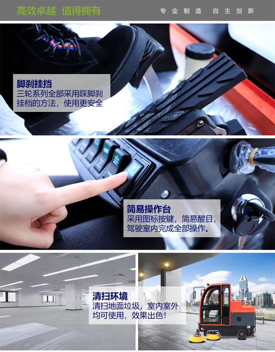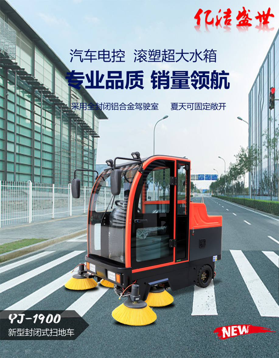 YJ-1900全封闭扫地车系列产品主要应用于物业保洁、环卫园林、市政道路、企业车间、车站码头、校园景区、广场公园、粉尘厂房、新兴农业等公共场所地面的日常垃圾清扫及保洁工作。