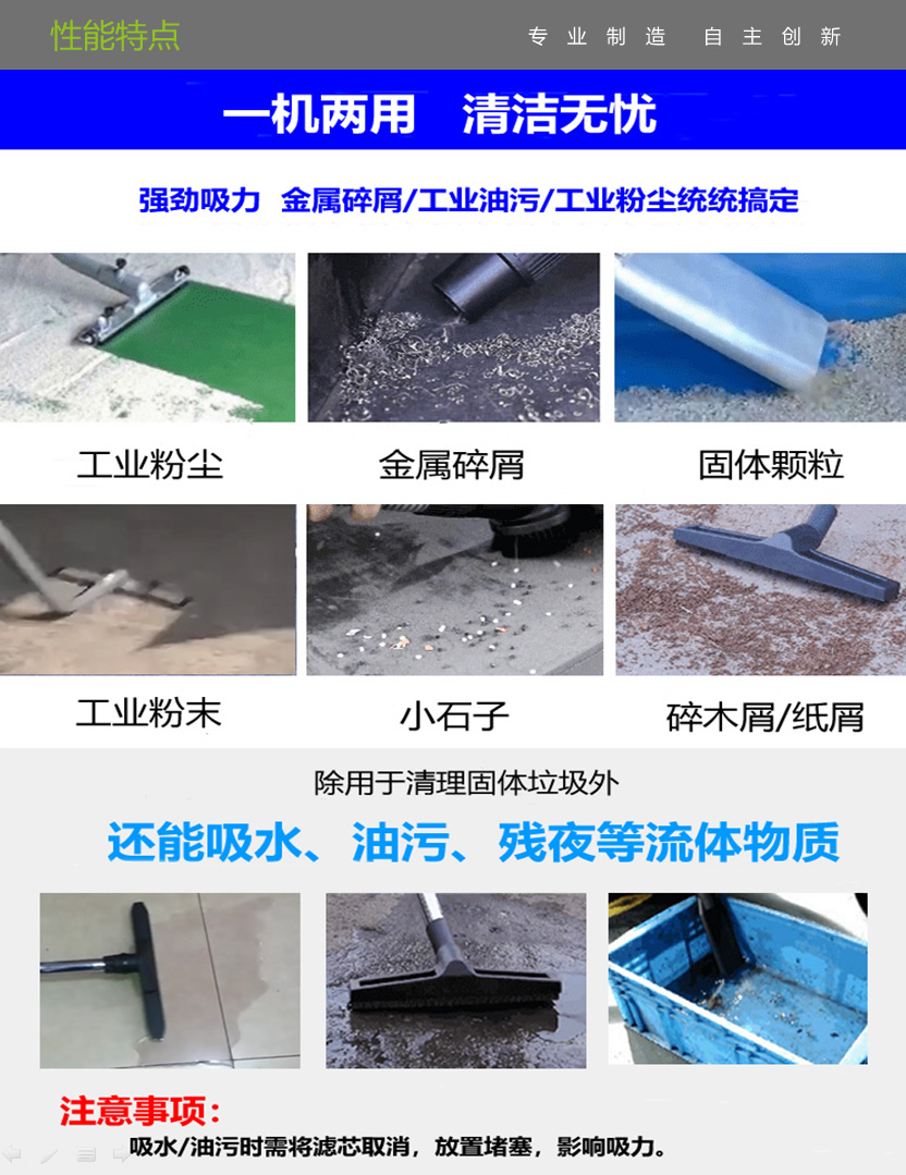 适用于工厂车间的:地面尘土、煤灰、水泥、碳素、陶瓷、面粉、铁屑、玻璃碎片等工作。