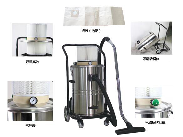 1、气动防爆吸尘器无须电源,以压缩空气为动力,有压缩空气的场所可替代电动吸尘机。