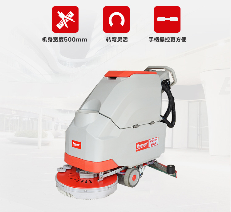 适用范围:贝纳特手推式洗地机适用于清洁小至中等面积的地面